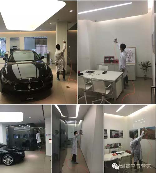 工程背景:4月份我們綠贊空氣管家曾上門對法拉利&瑪莎拉蒂城市展廳的兩個汽車展示廳進行了專業的室內空氣凈化治理,得到了一致的好評和認可。