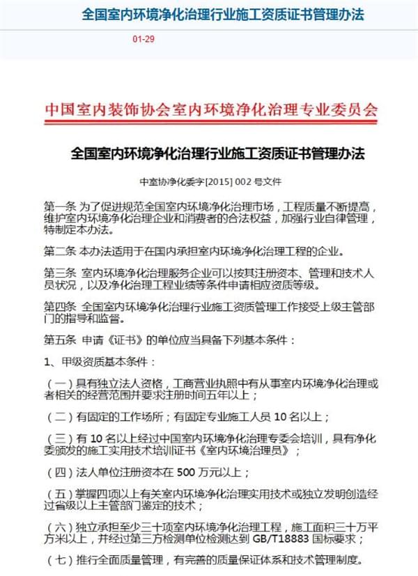 中國室內裝飾協會室內環境凈化治理專業委員會資質管理:http://www.cicen.org/erji.php?id=92&bid=182