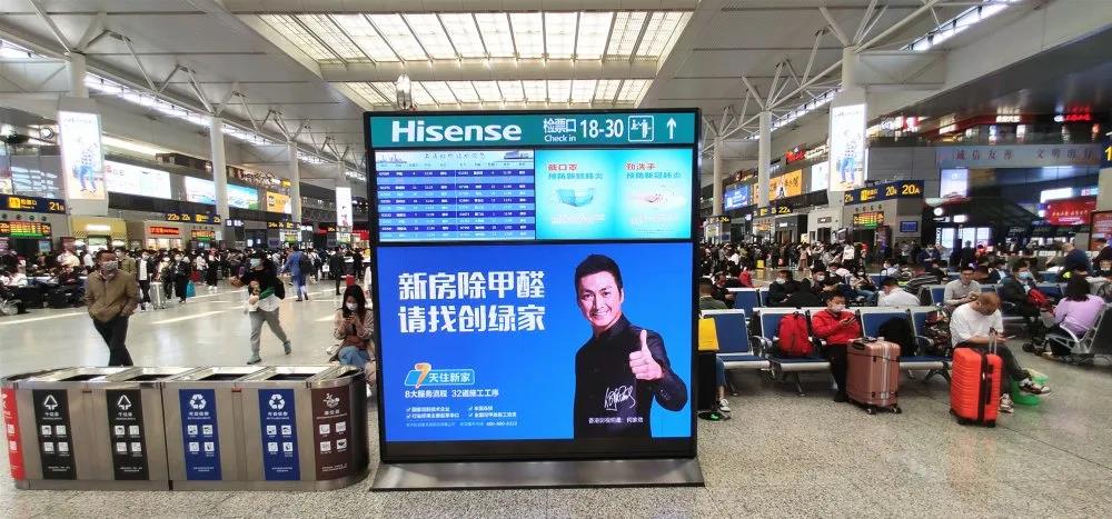 2020年4月30日起,創綠家繼投放廣州、北京高鐵廣告后,再次霸屏上海虹橋站!高鐵站是一座城市信息交流的核心地段,占據高廣C位就是掌握了全國交通信息流的話語權,這成效在魔都上海尤為突出。