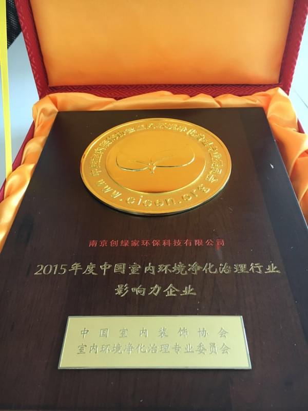 由中國室內裝飾協會室內環境凈化治理專業委員會主辦的“中國室內環境凈化治理行業技術創新論壇暨2015年凈化委工作年會”在北京召開。會上,成立了中國室內裝飾協會室內環境凈化治理專業委員會金融資本服務平臺,并確定2016年為“中國室內環境凈化治理行業體驗年”,中國室內裝飾協會室內環境凈化治理專業委員會將推動行業公益項目和企業獨立公益項目的進程。會上授予南京創綠家環保科技有限公司2015年度中國室內環境凈化治理行業影響力企業榮譽稱號!