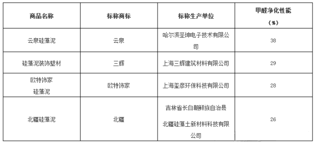 涉嫌甲醛凈化性能40%以下的樣品測試結果匯總表
