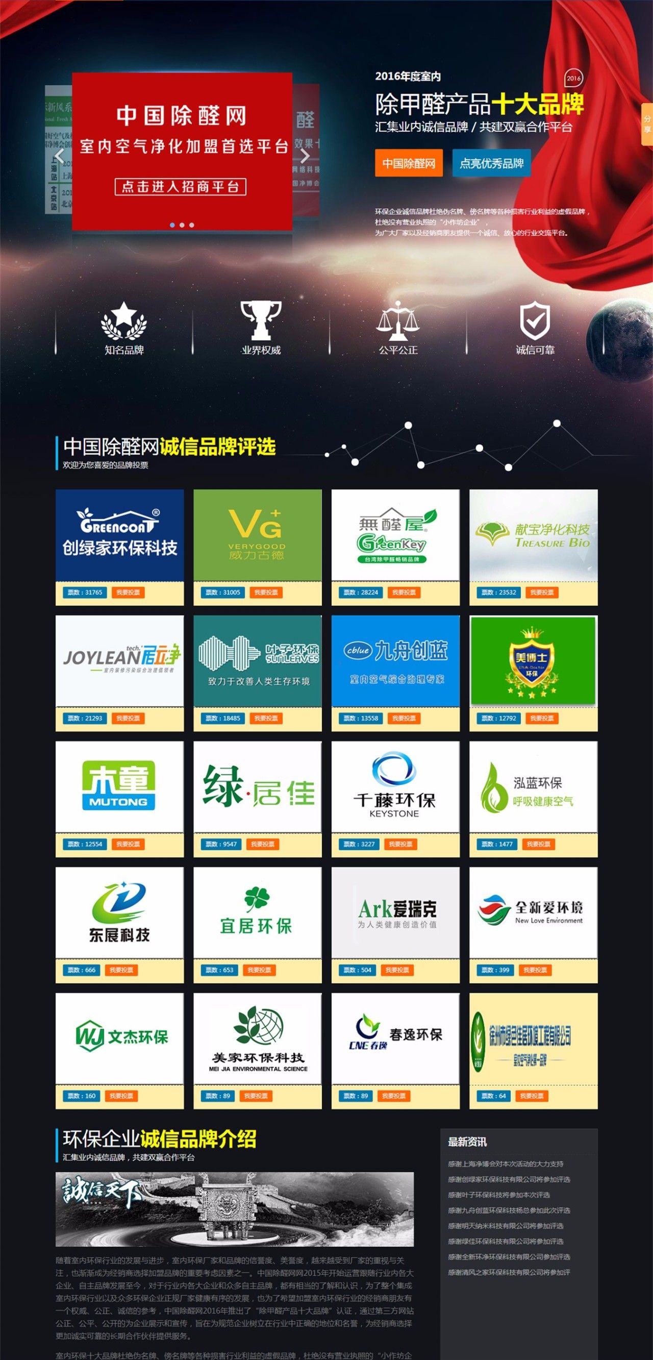 在中國除醛網舉辦的2016年度室內除甲醛產品十大品牌評選中,經過三個月的激烈角逐,創綠家一路披荊斬棘進入十強,并榮獲年度十大品牌之首!