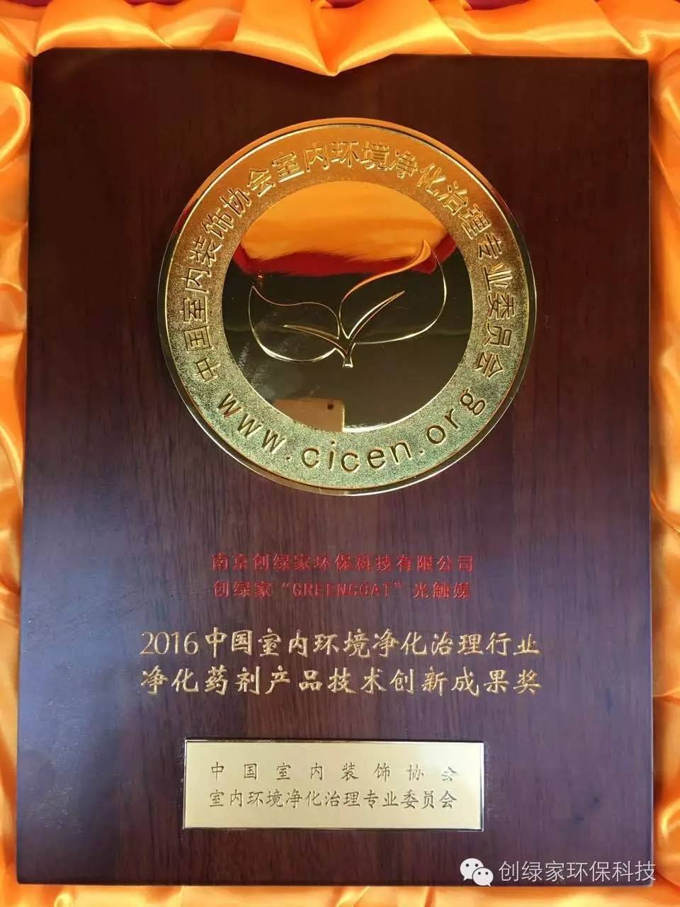 同時,創綠家在11月底由中國凈化委組織在中國北京召開的“2016中國室內環境凈化治理行業創新技術大會暨‘平臺+’‘服務+’‘健康+’戰略發布會”中,也獲得過“凈化藥劑產品技術創新成果獎”,可謂是雙喜臨門。