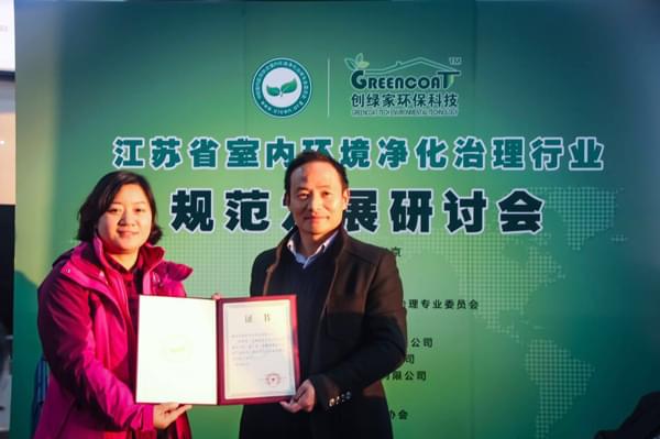 最后,凈化委向創(chuàng)綠家環(huán)保科技頒發(fā)了“蓓蕾健康空氣行動”江蘇省執(zhí)行單位證書。